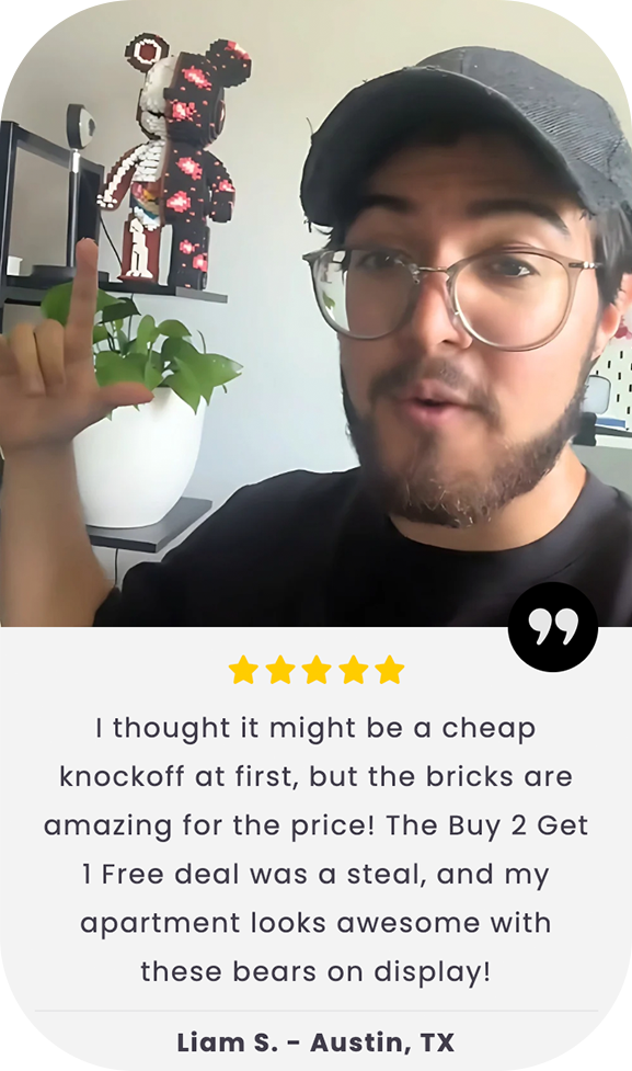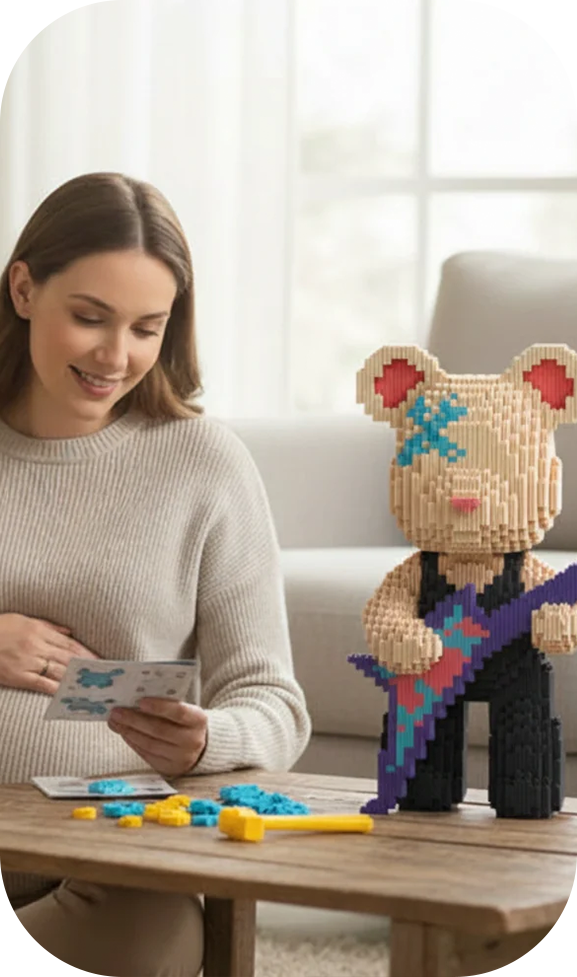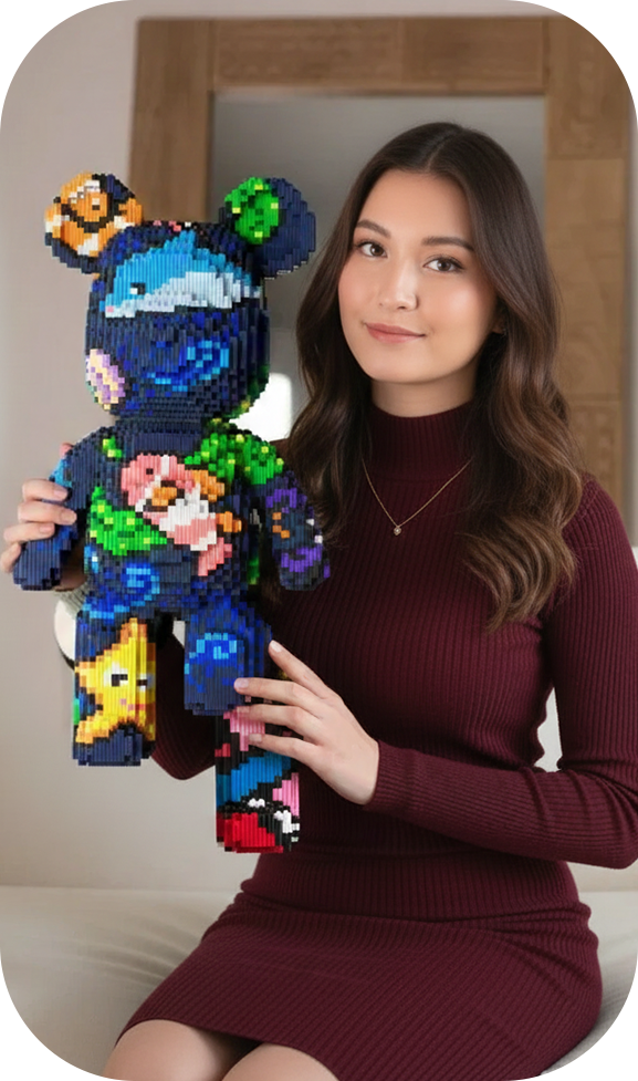 Nos briques haute densité assurent une stabilité maximale à votre création. Un ours solide, conçu pour durer des années.