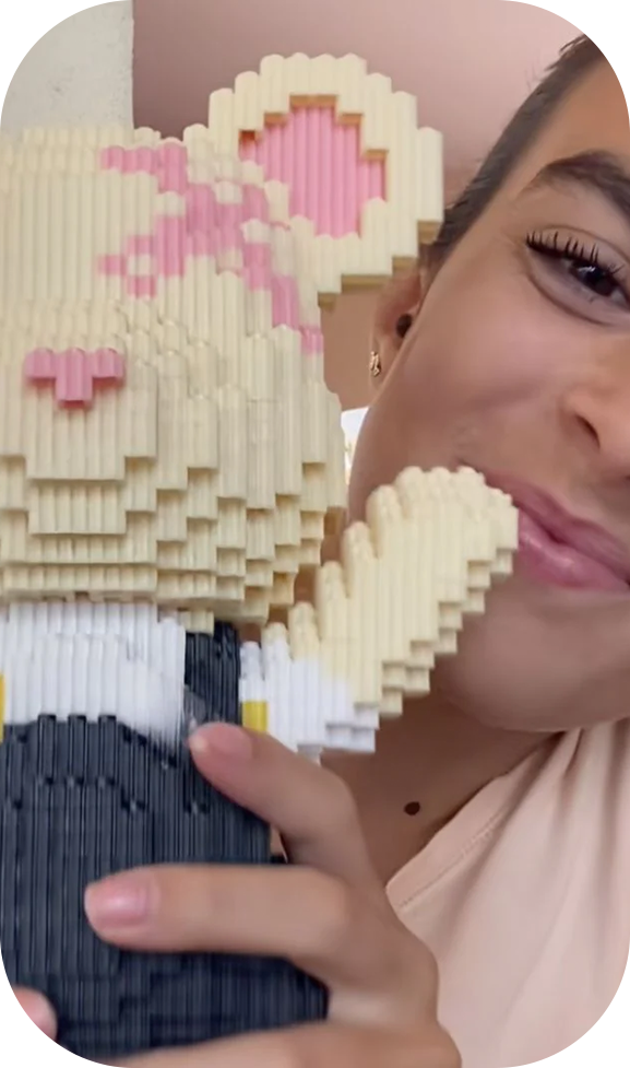 Bien plus qu’un simple objet, cette création allie l’expérience de l’assemblage à une esthétique contemporaine affirmée. Chaque pièce est composée de milliers d’éléments finement ajustés, offrant un rendu harmonieux, fluide et parfaitement structuré.