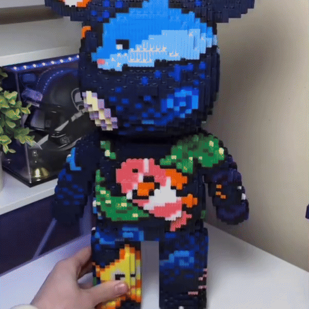Une fois bien assemblé, le nounours est très solide grâce à la qualité des briques qui s’emboîtent parfaitement, idéal pour la déco.