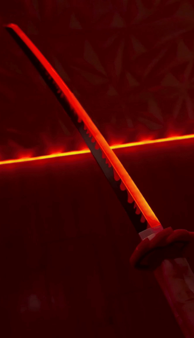 Éclairage LED intégré : Activation simple via un bouton, offrant une lumière vibrante idéale pour recréer l’ambiance épique de l’univers Demon Slayer.